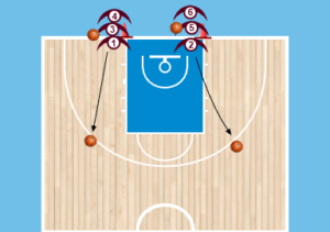 Ζητάμε και απο τις δυό πλευρές το ίδιο να κάνουνε με στόχο π.χ να βάλουμε 20 τρίποντα σε 2 λεπτά είτε ότι θέλετε εσείς.Εδώ εστιαζόμαστε περισσότερο στην ΡΟΗ ΤΗΣ ΑΣΚΗΣΗΣ και όχι σε τόσο τεχνικά θέματα.Σημαντικό είναι η σωστή έξοδος απο το σκρίν και η εκτέλεση του σούτ άμεσα χωρίς καθυστερήσεις.